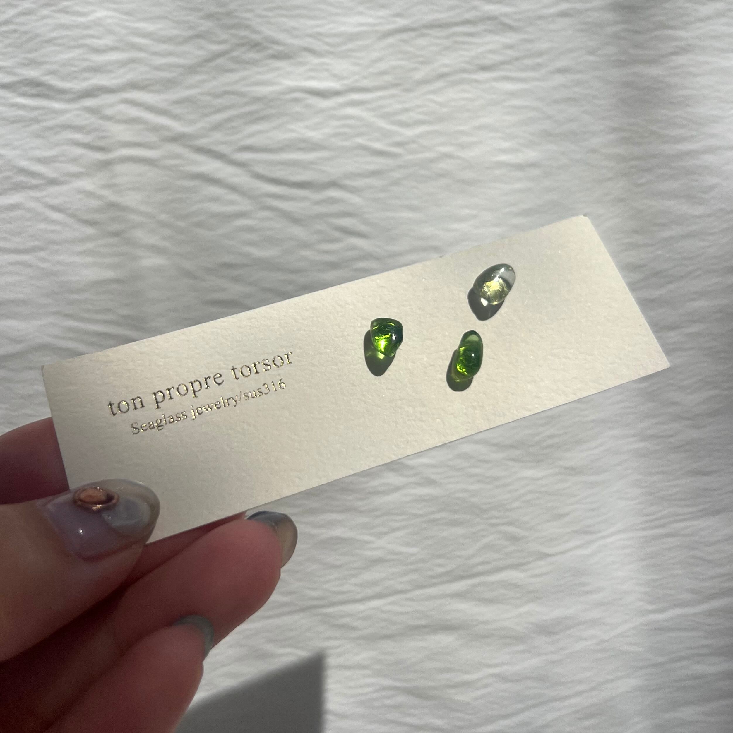 シンプルにシーグラスを感じられ、つけたままにしやすいスタッドピアス。