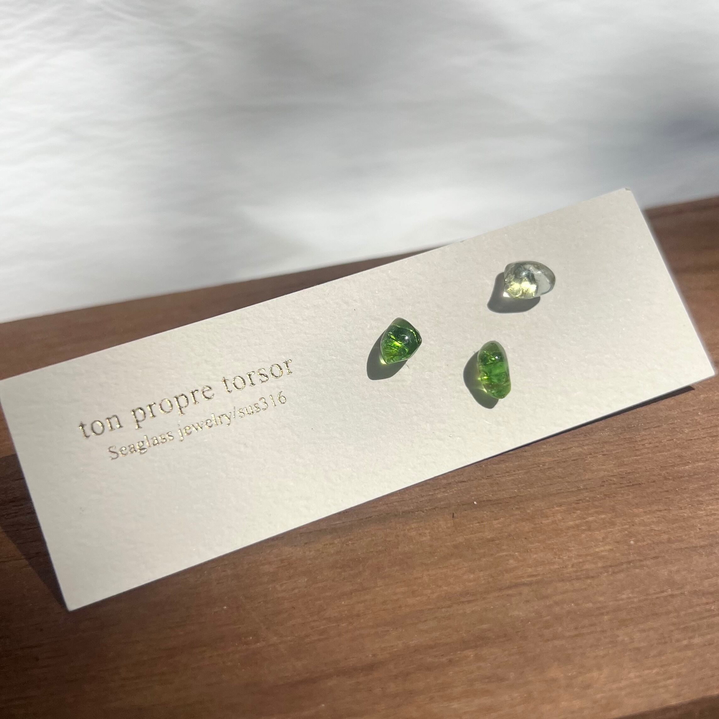 〜No,2 緑*緑*白〜スタッドピアス GOLD 3粒