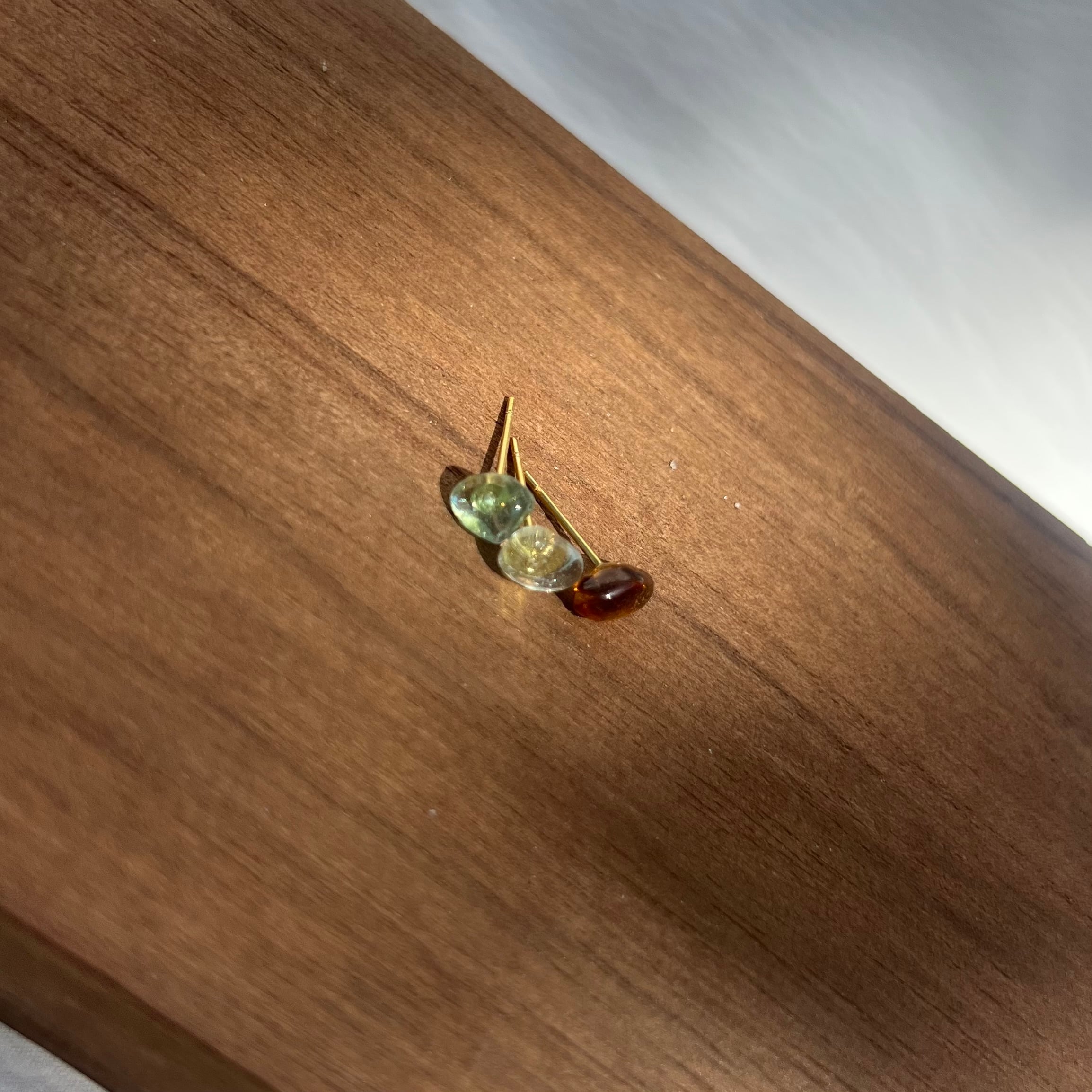 〜No,3 茶*白*水〜スタッドピアス GOLD 3粒