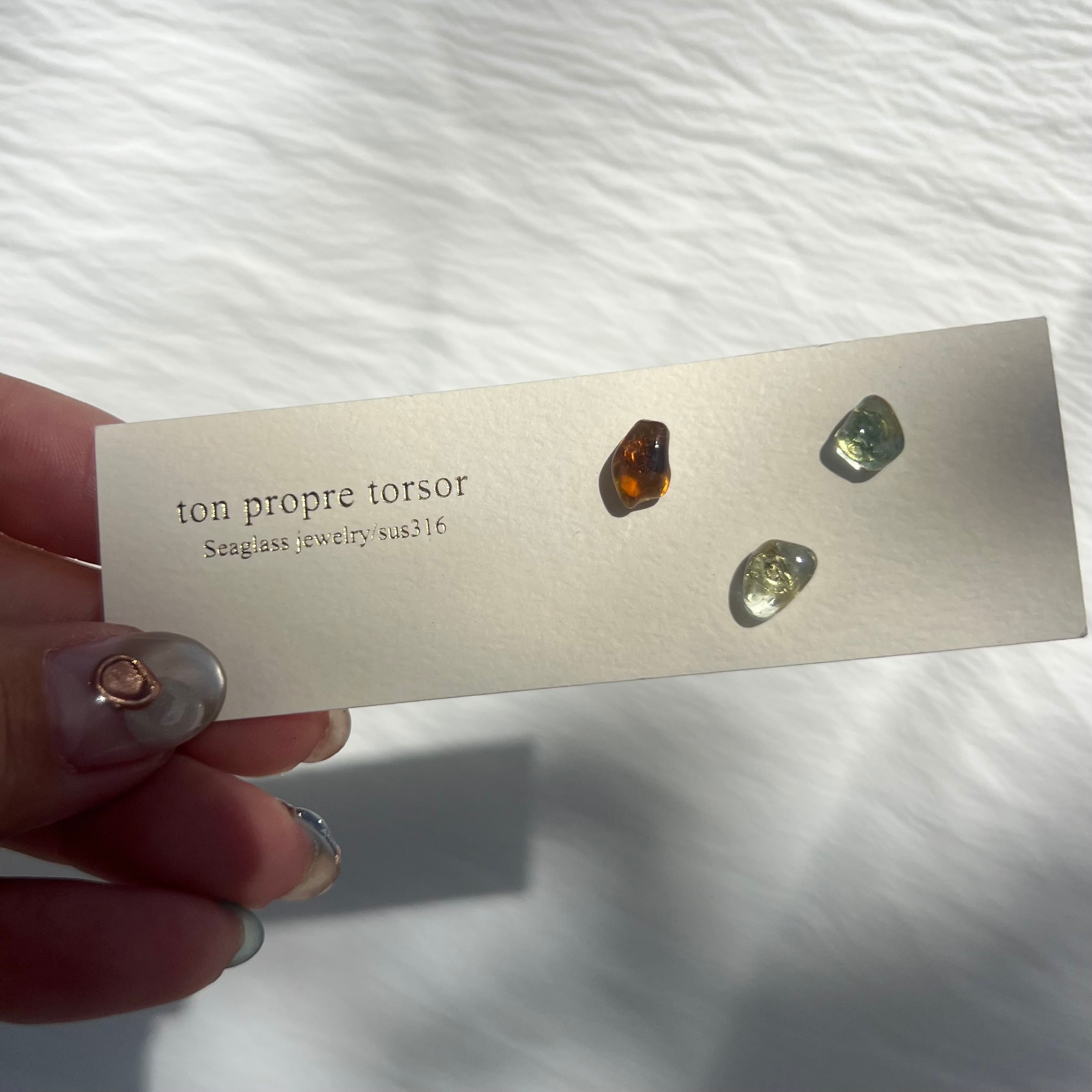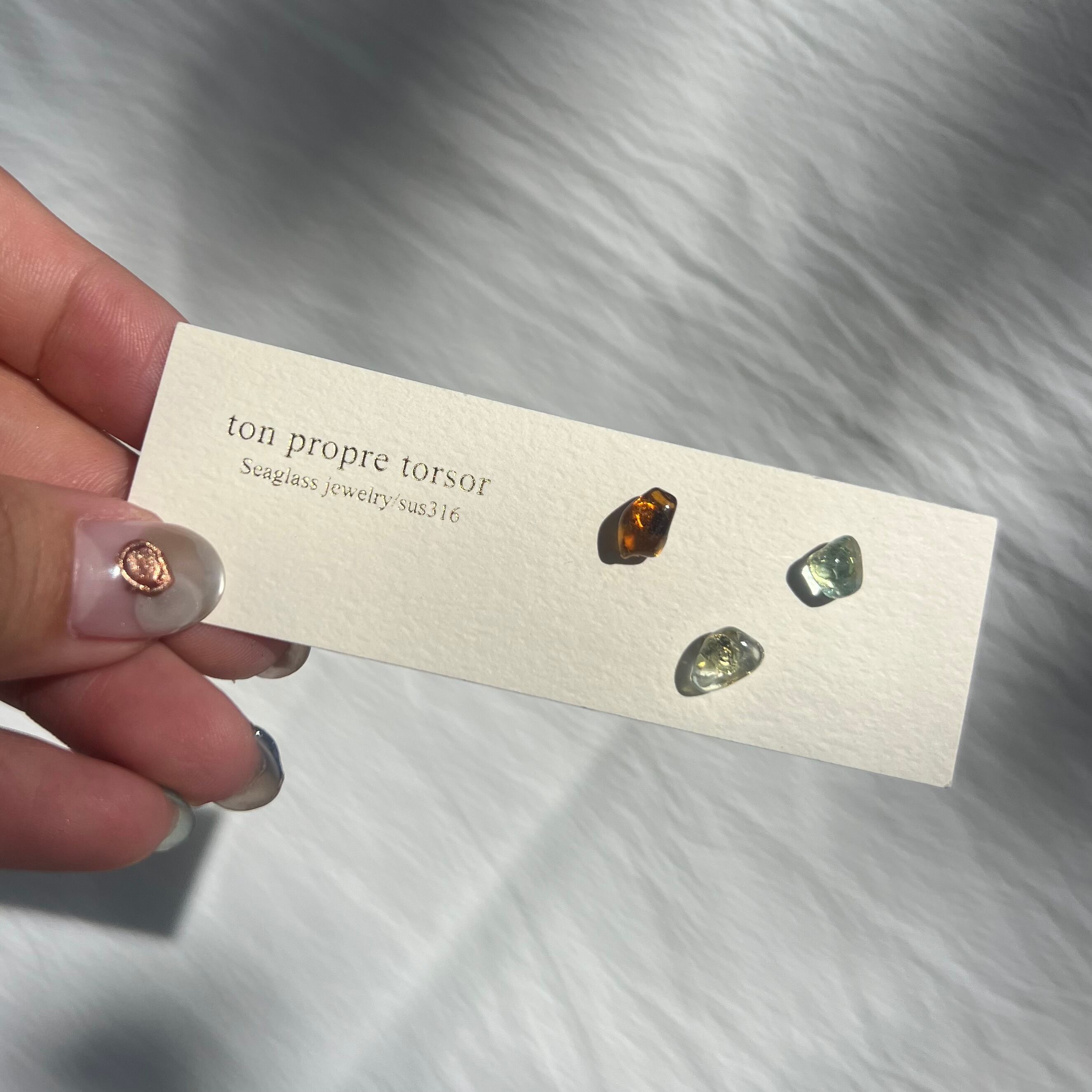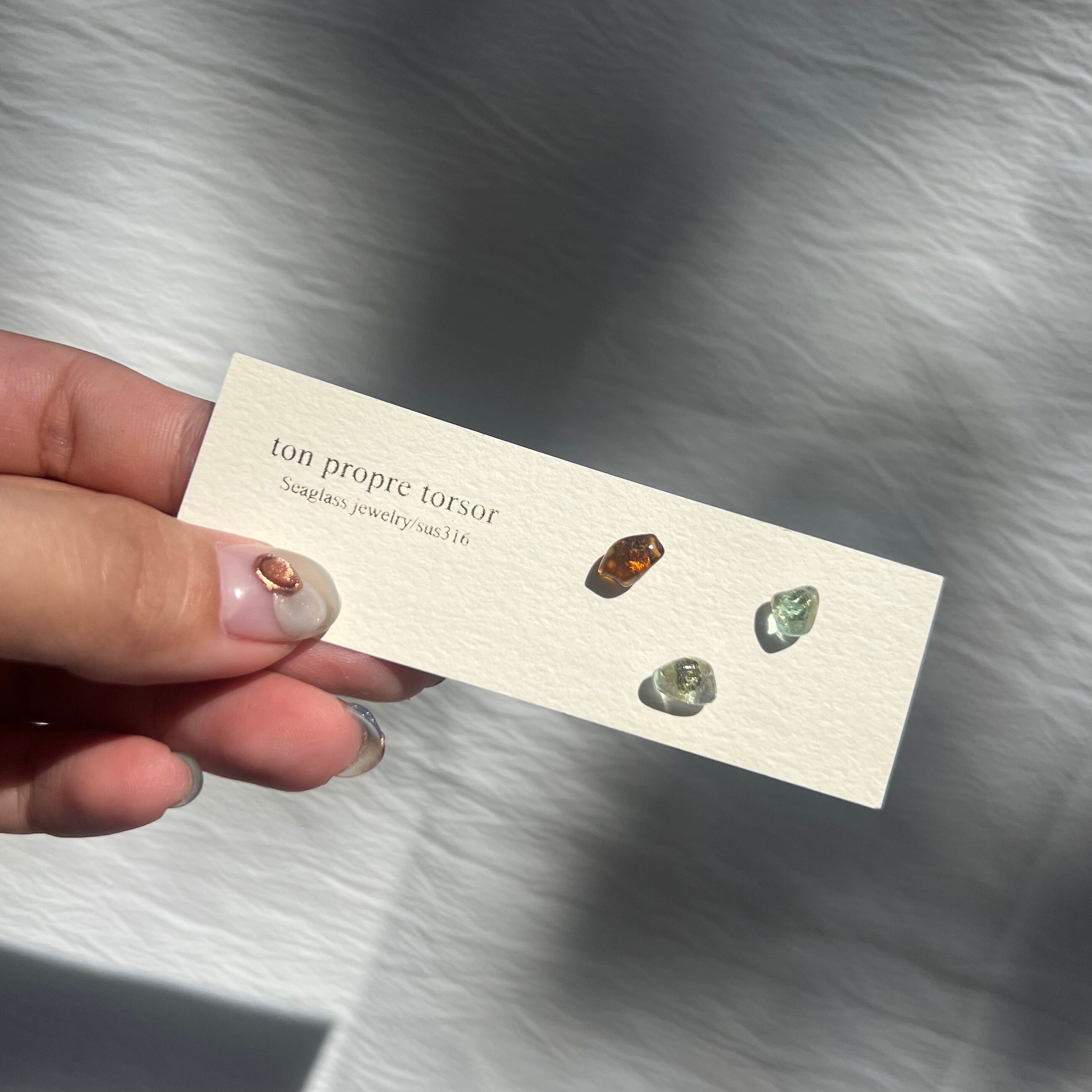 シンプルにシーグラスを感じられ、つけたままにしやすいスタッドピアス。