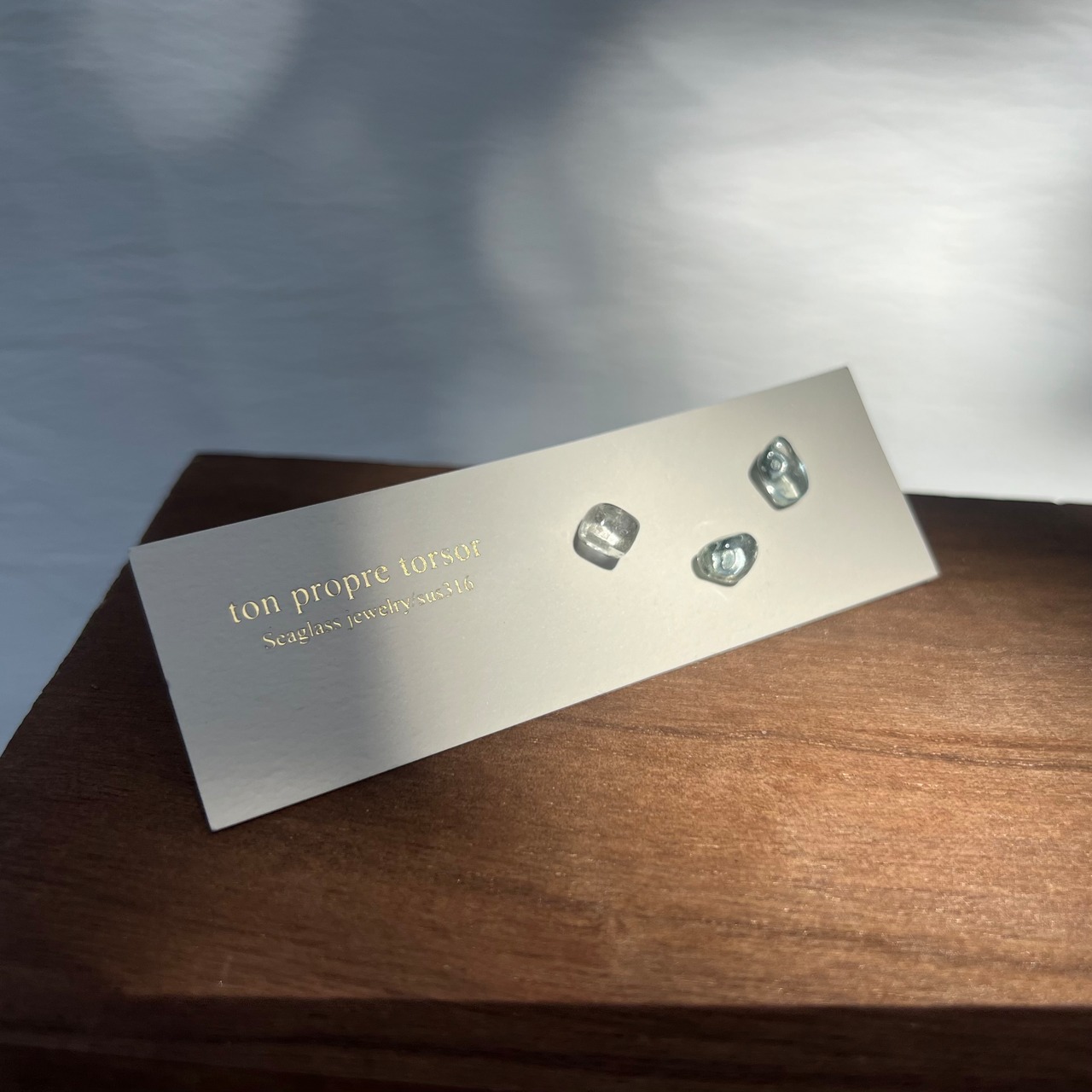 シンプルにシーグラスを感じられ、つけたままにしやすいスタッドピアス。