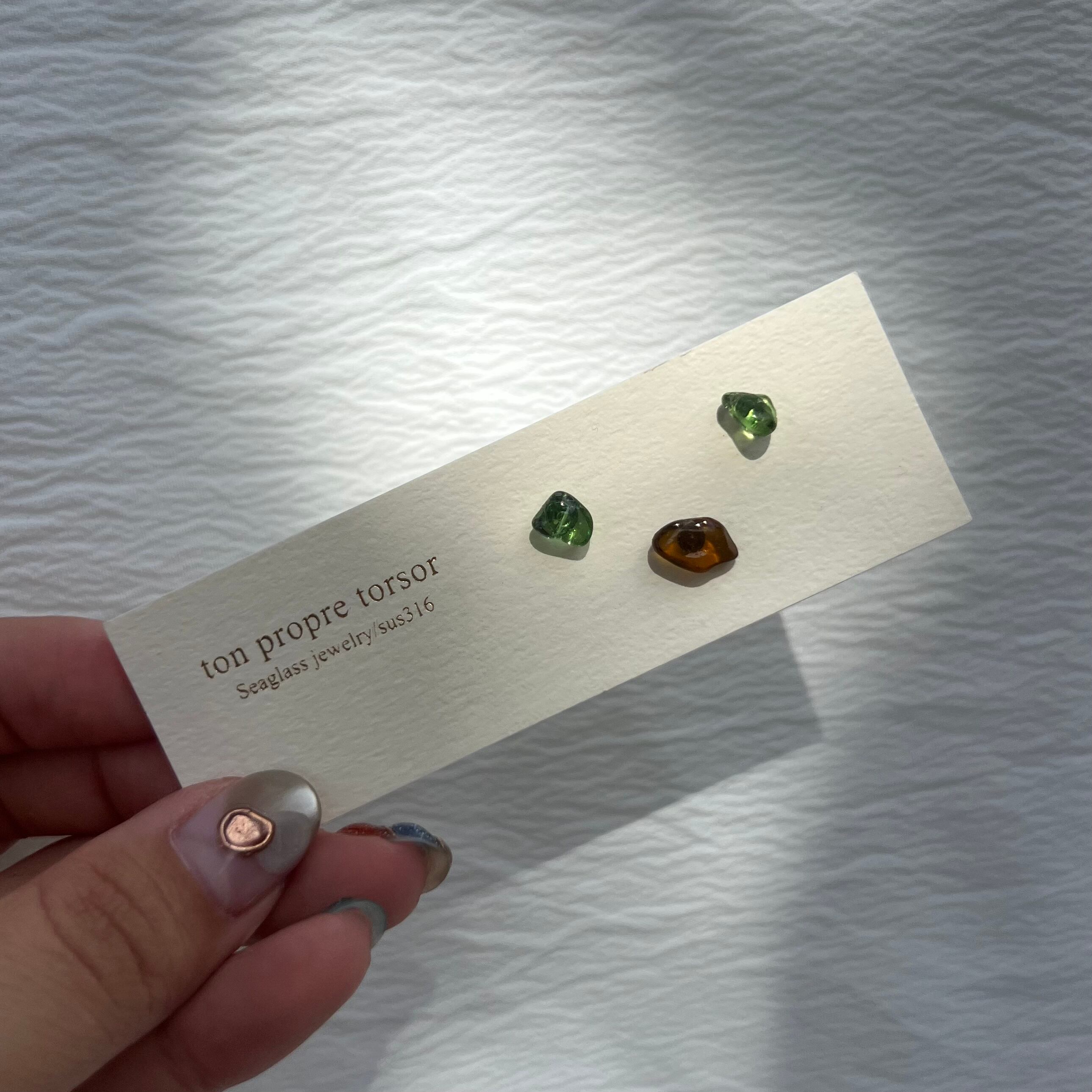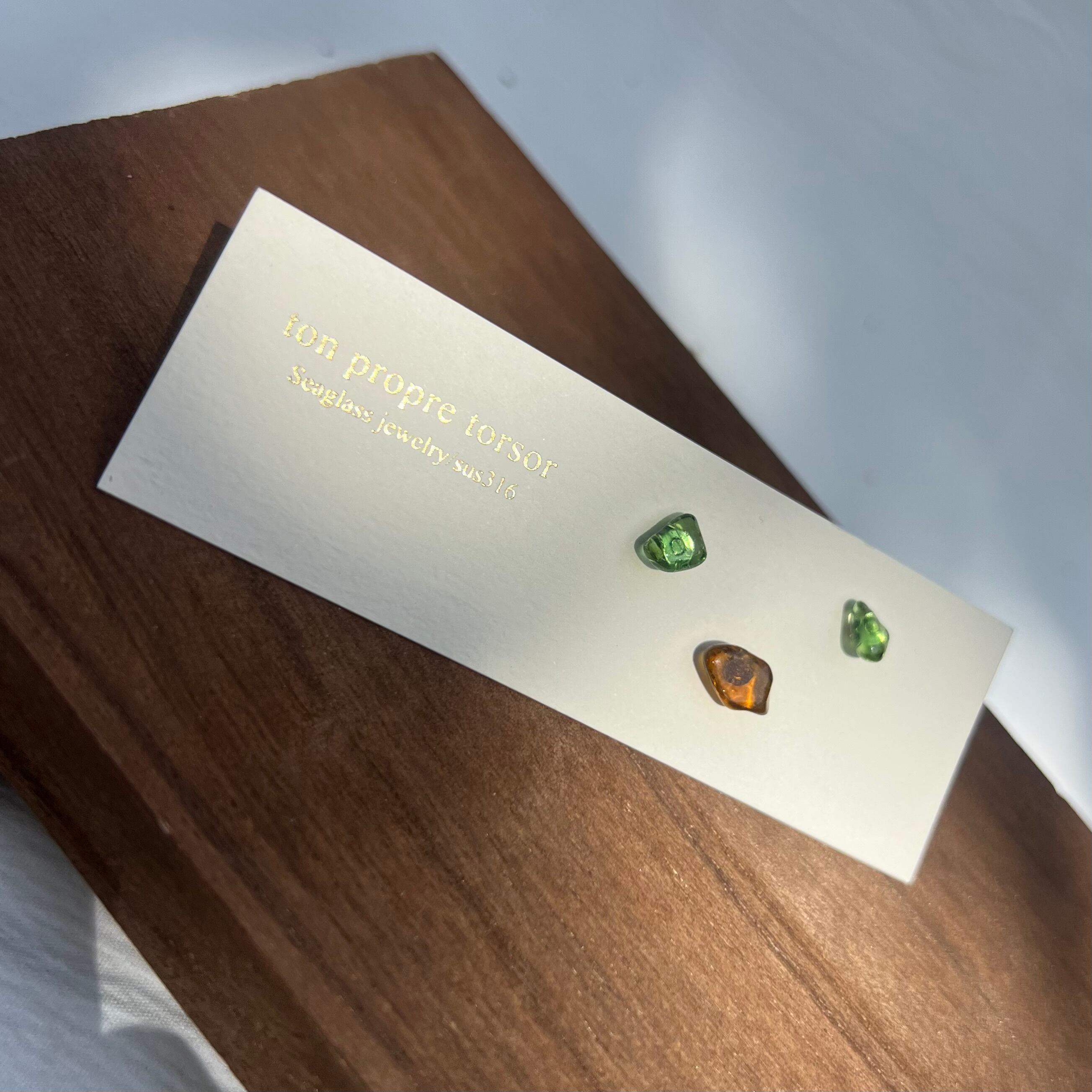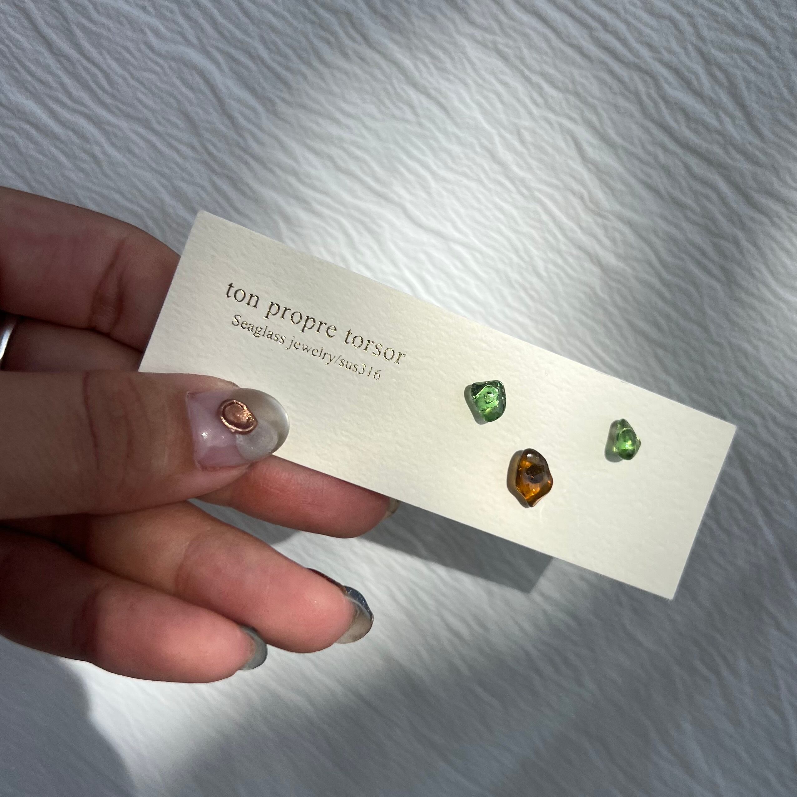 シンプルにシーグラスを感じられ、つけたままにしやすいスタッドピアス。