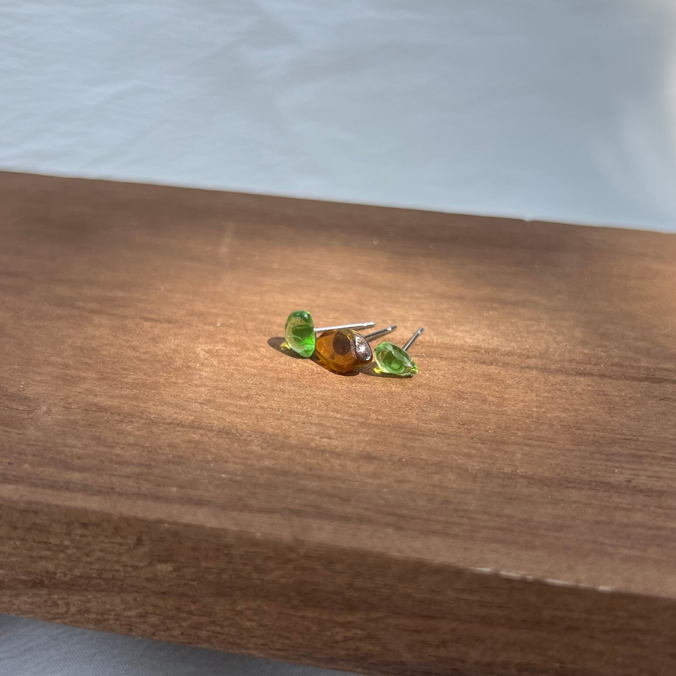 〜No,9 緑*茶*緑〜スタッドピアス silver 3粒