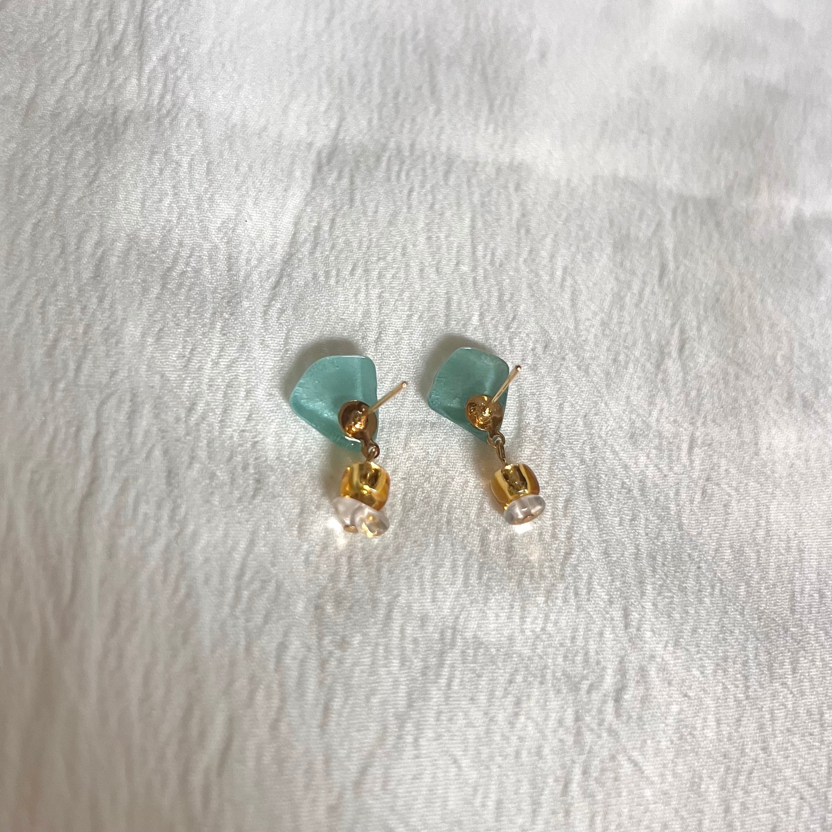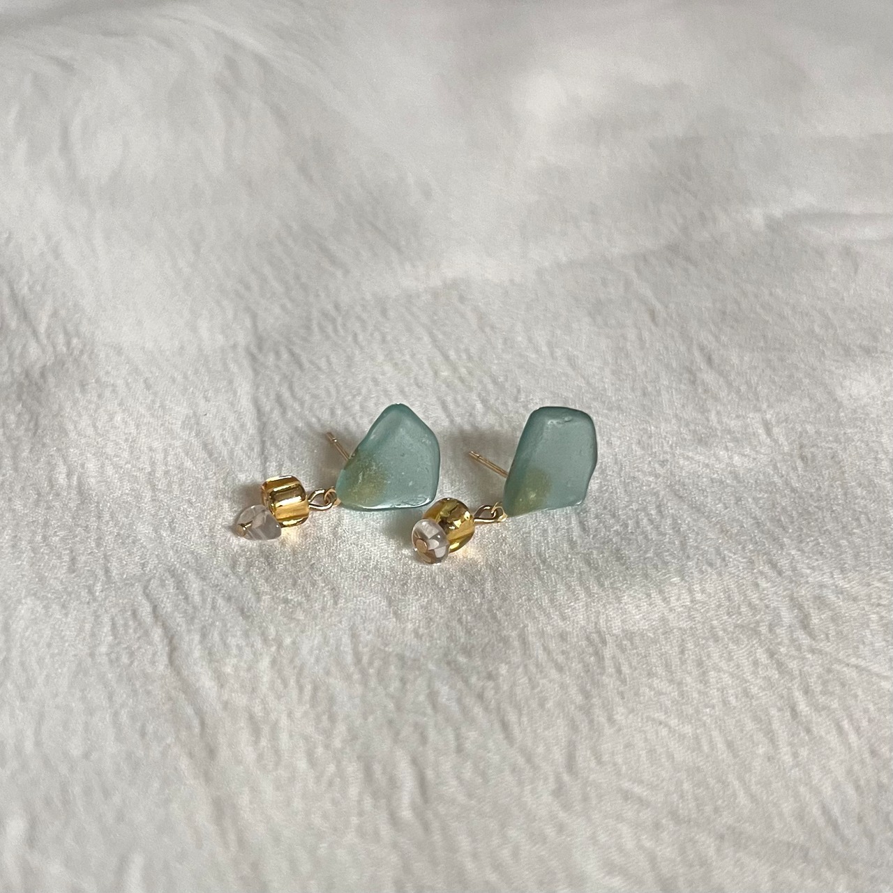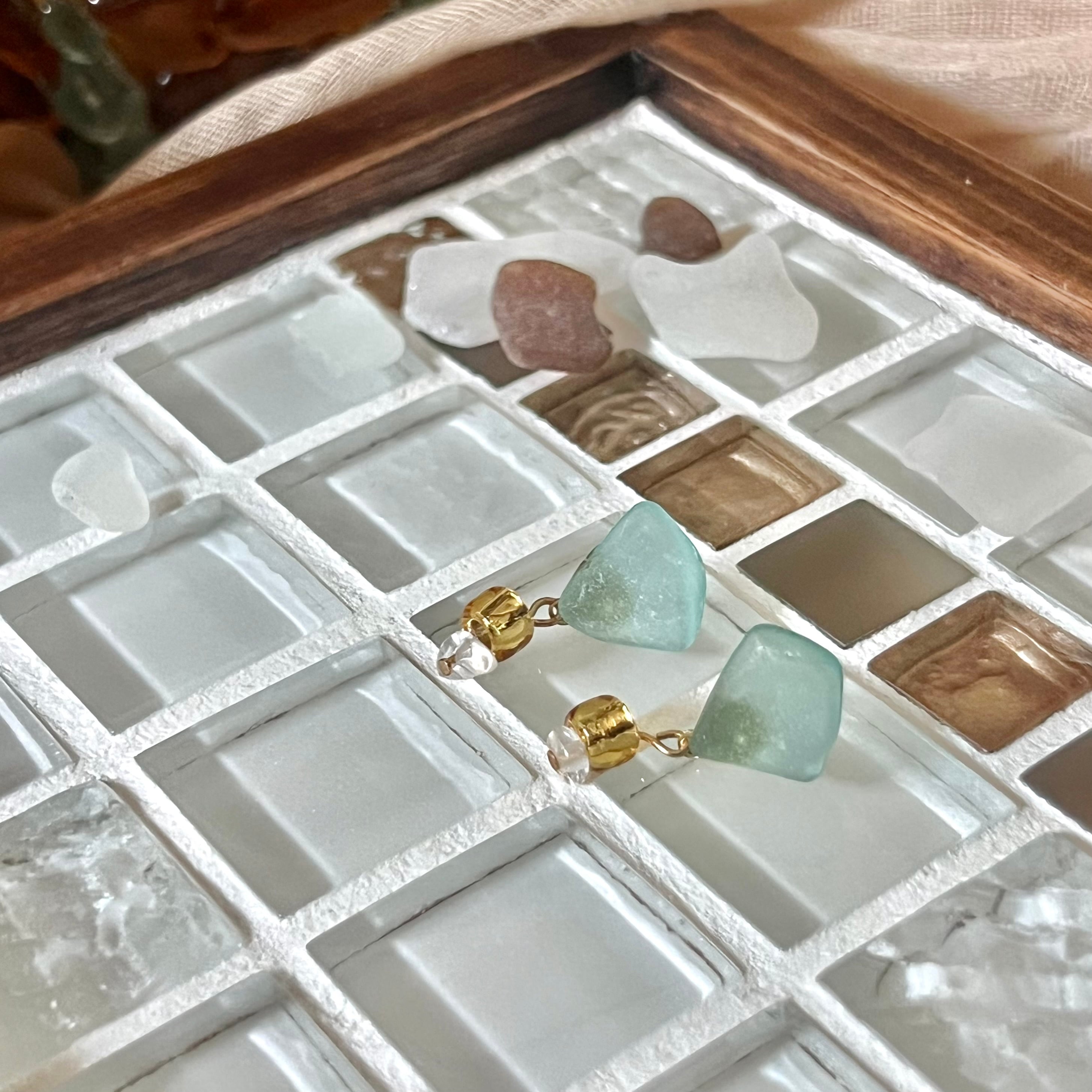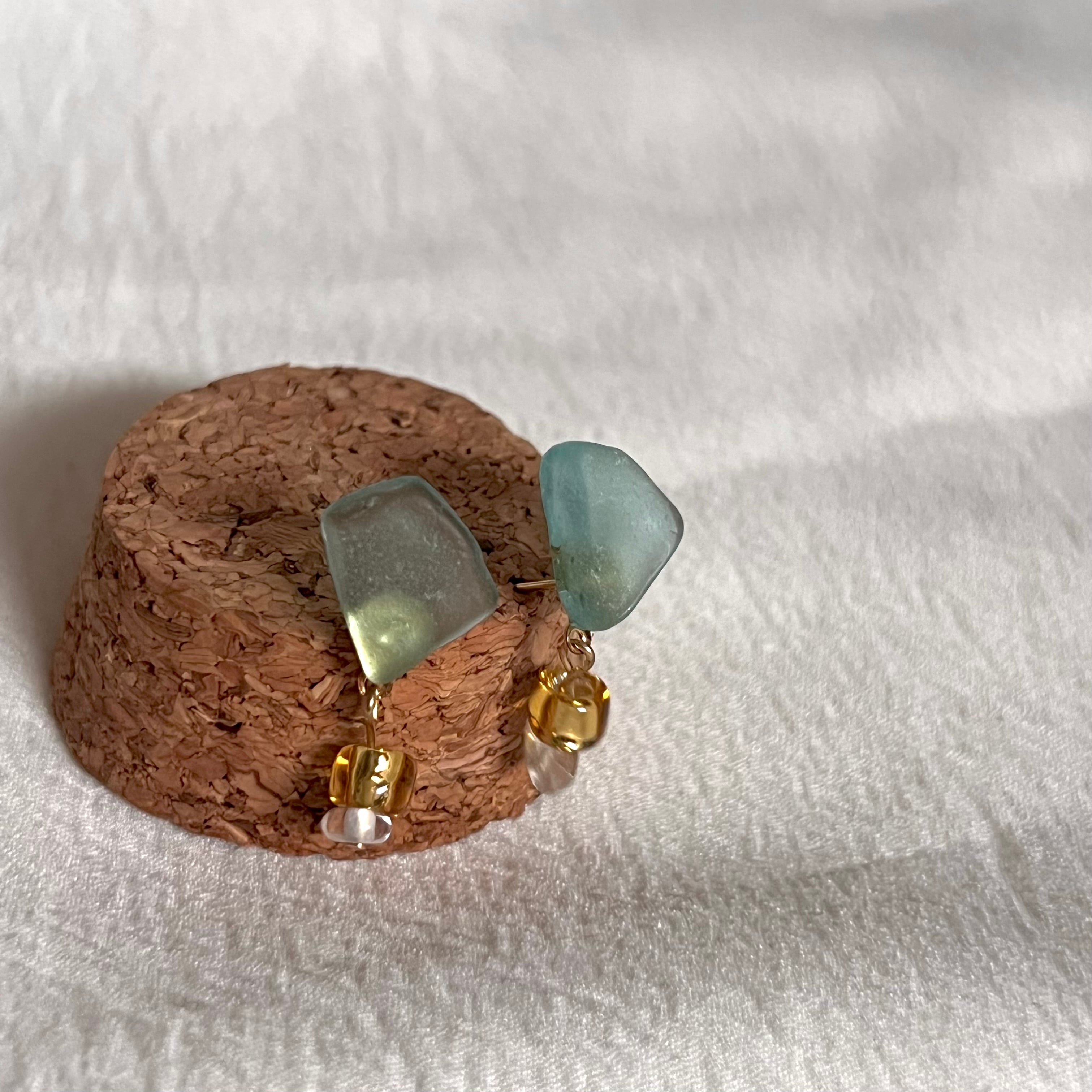 波雫(なみしずく) - Wave Drops|一点ものシーグラスピアス(gold × aqua)・ガラス&クリスタルの海色アクセサリー