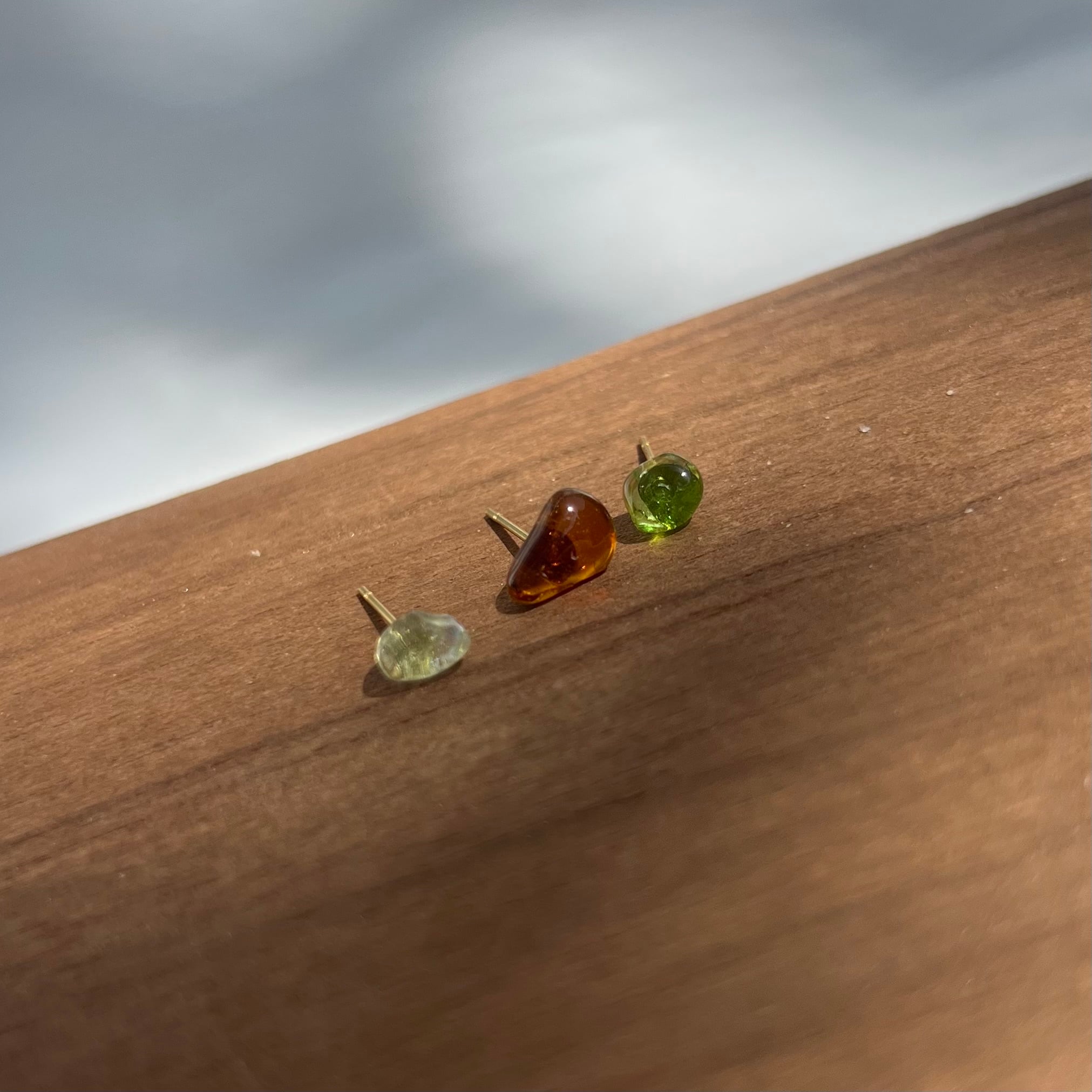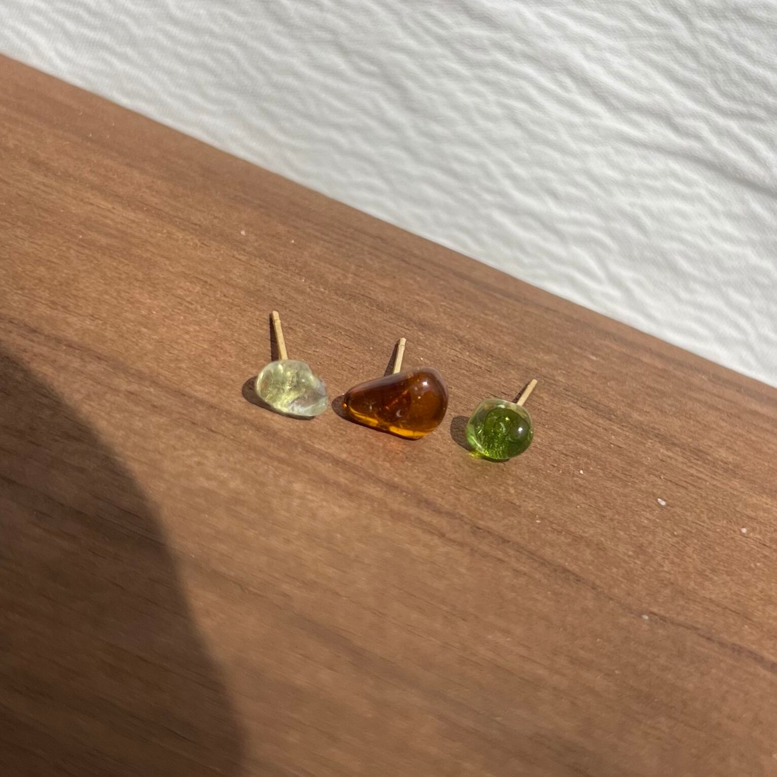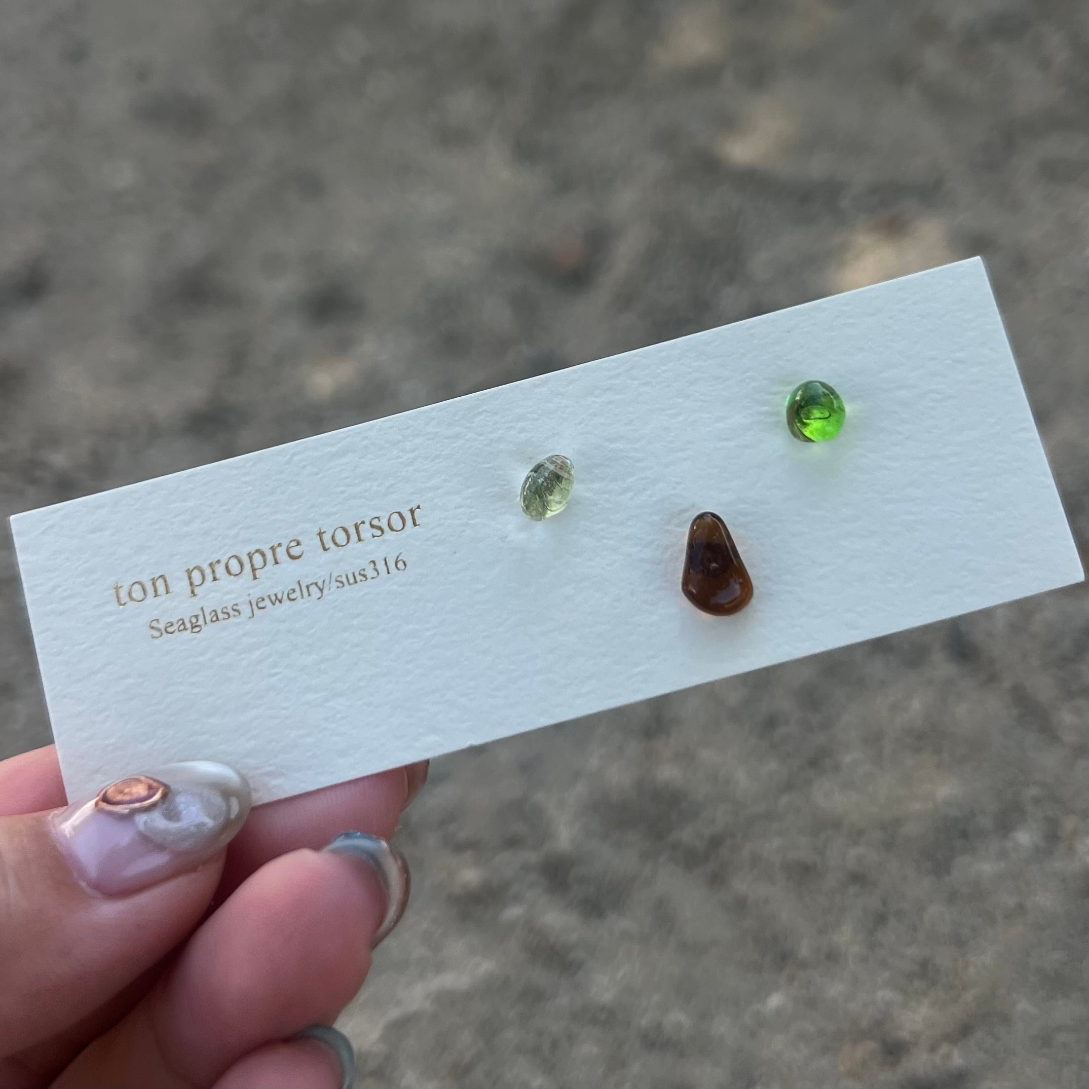 〜No,1 白*茶*緑〜 スタッドピアス GOLD 3粒