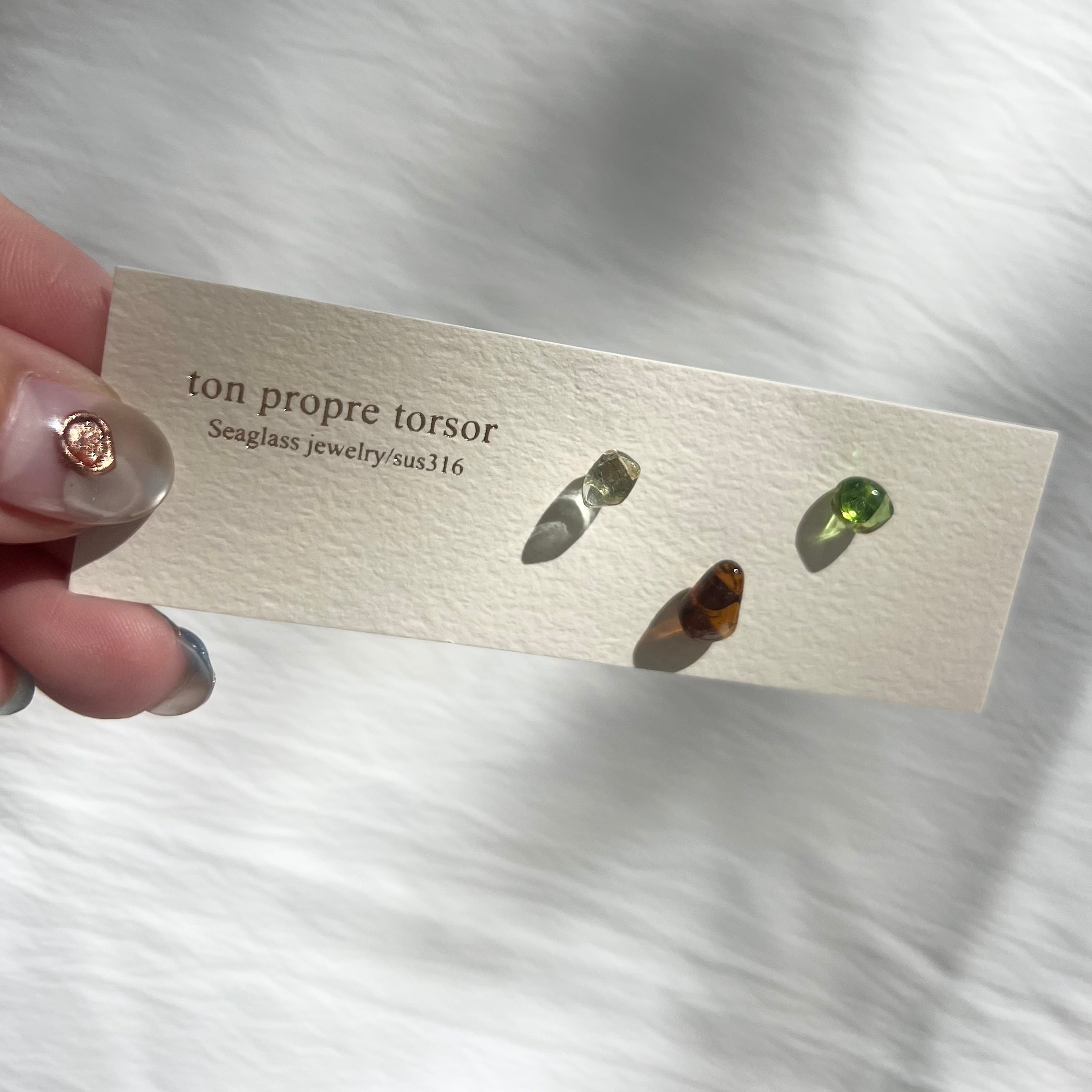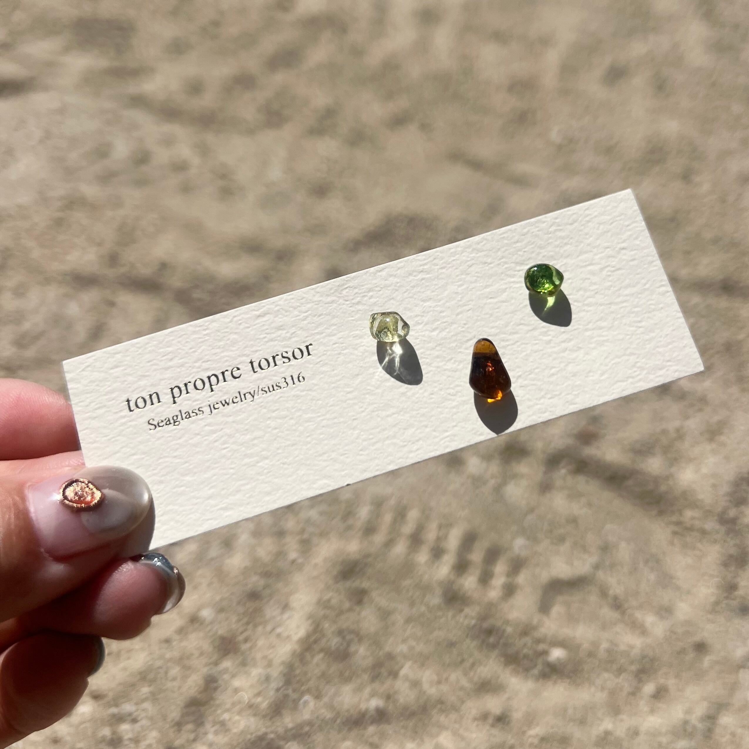 シンプルにシーグラスを感じられ、つけたままにしやすいスタッドピアス。